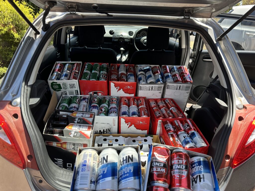 (画像:貯め込んだ空き缶をリサイクル場へ)