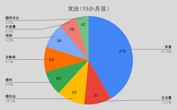 | 家賃:友人宅のリビングを間借(1週間で$90の家賃 + 修繕費) | 379 |